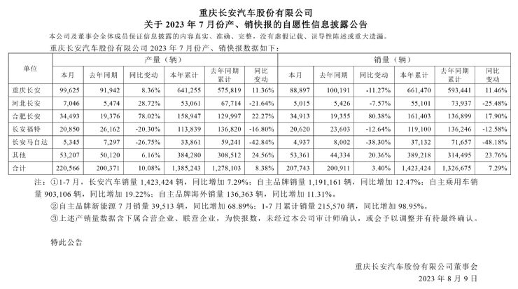 第三季度长安汽车每月销量都超过20万辆,其中7月份销量为20.8万辆,同比增长3.4%;8月份销量则为20.9万辆,同比增长51%;9月份销量增加至23.7万辆,同比增长9.9%。
