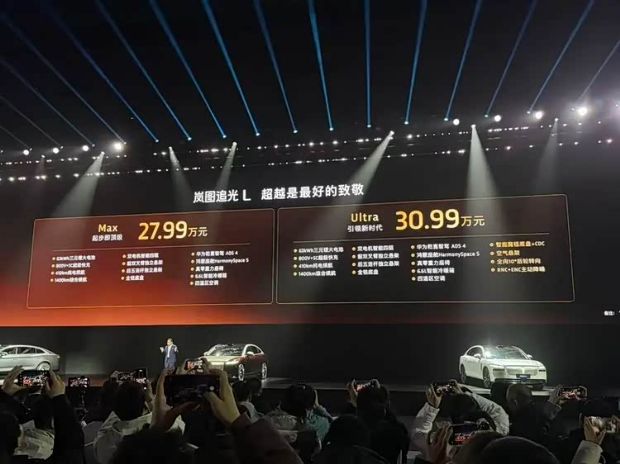 12月10日,岚图汽车官方宣布旗下新时代旗舰轿车岚图追光L正式上市,新车共推出2款车型,售价分别为27.99万元和30.99万元。新车全系搭载华为乾崑智驾 ADS 4、鸿蒙座舱HarmonySpace 5,并标配双电机智能四驱、全域800V岚海智混技术+5C超充等旗舰技术。