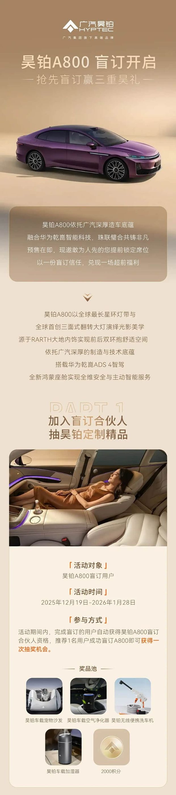 • 昊铂A800盲订开启,88元抵2000元搭华为ADS 4