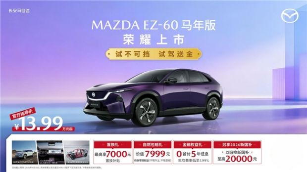 4月21日,长安马自达MAZDA EZ-60马年版(以下称EZ-60马年版)正式上市。新车推出增程200马年版、纯电600马年版两款配置,官方指导价分别为13.99万元、14.59万元,全系车型叠加至高23,000元专属购车权益。作为连续6个月蝉联合资新能源中型SUV销量冠军的全球战略车型,EZ-60马年版以“更好看、更好开、更安全、更智能”的全能实力和更具竞争力的价格,进一步夯实了“合资新能源SUV最优选”的市场地位。